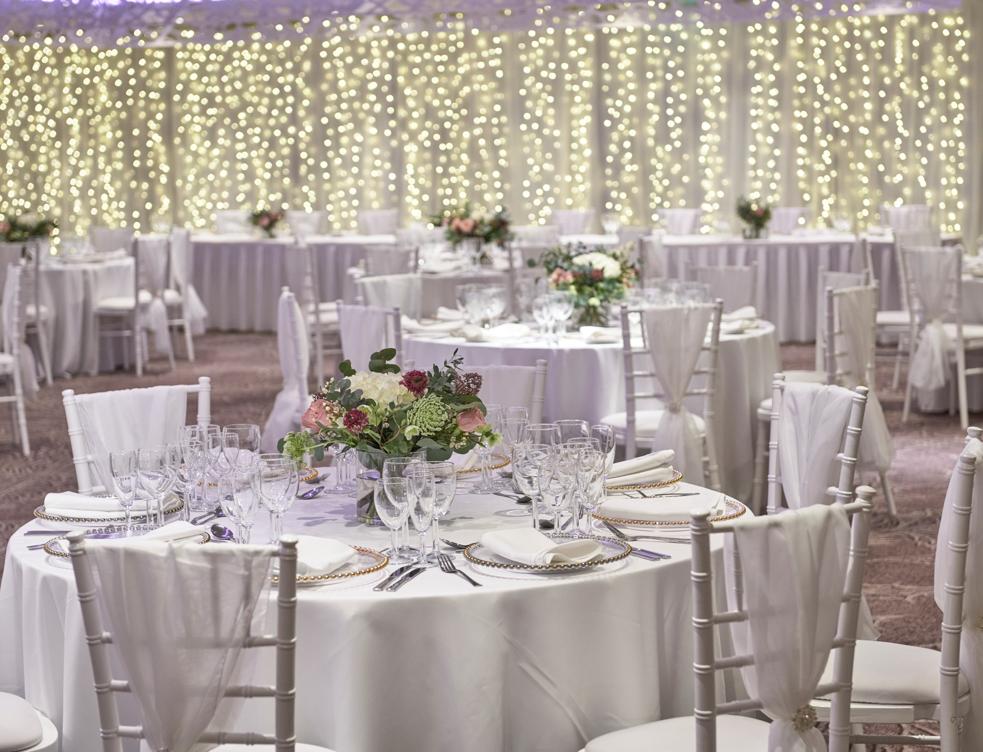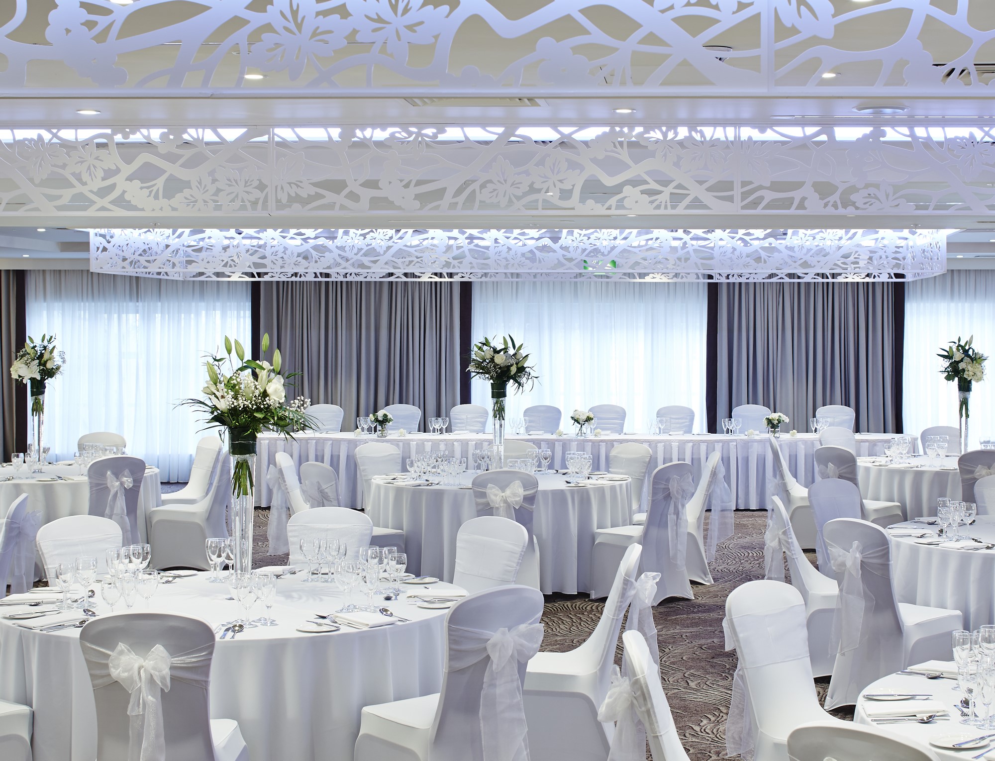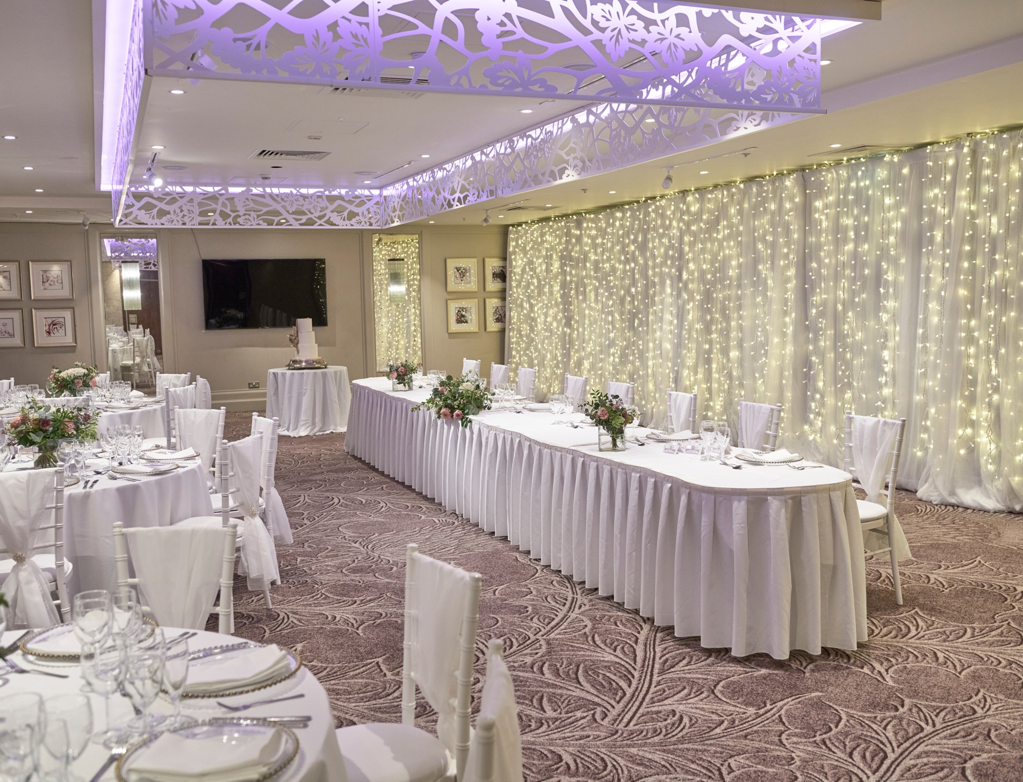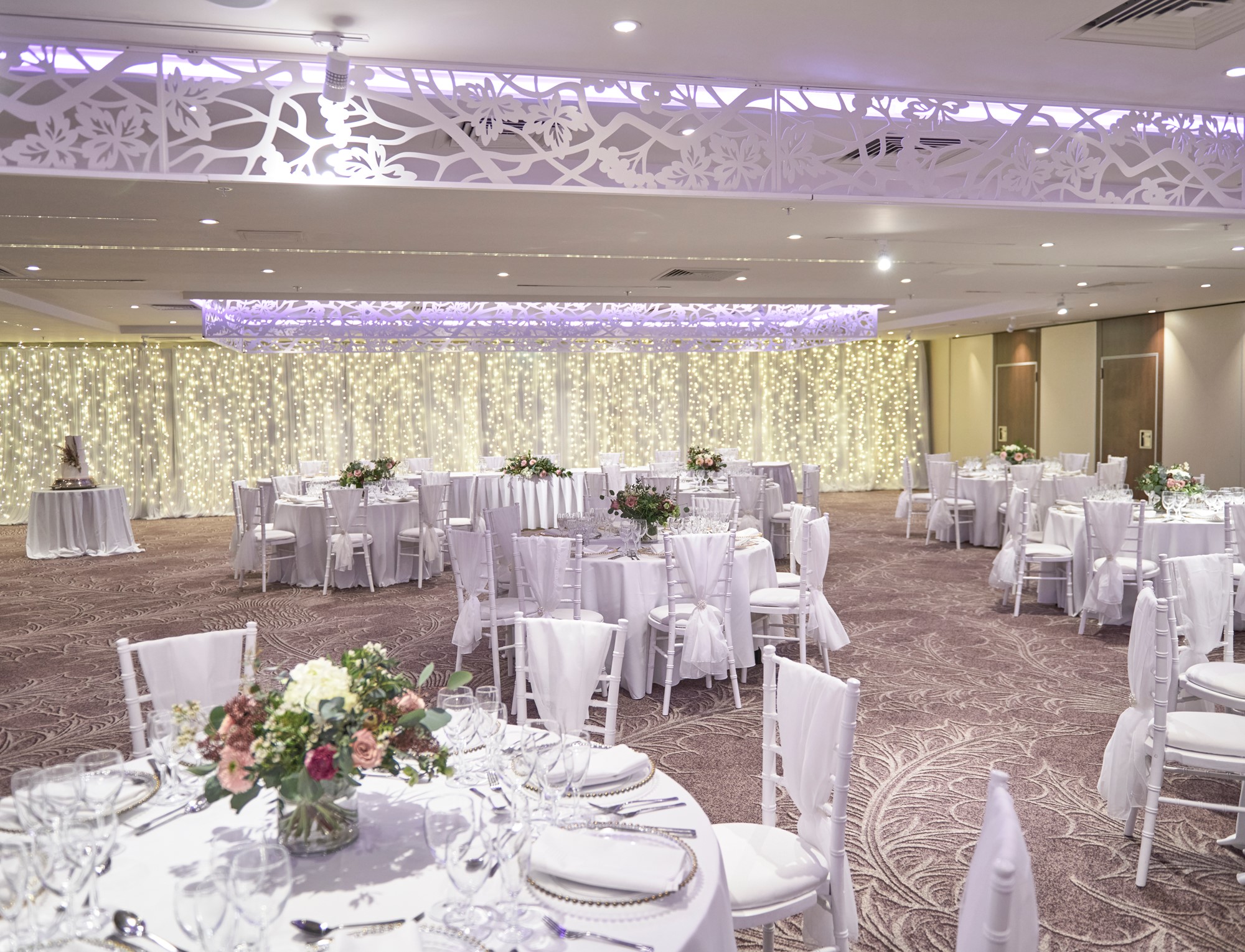 With a private bar facility, moveable partitions and dance floor, the Dalmahoy Suite can be adapted to comfortably accommodate a wedding breakfast for between 50 and 250 guests. Seated at round clothed tables, all guests will be in full view of the top table. Additional guests can be invited to join your celebration in the evening.