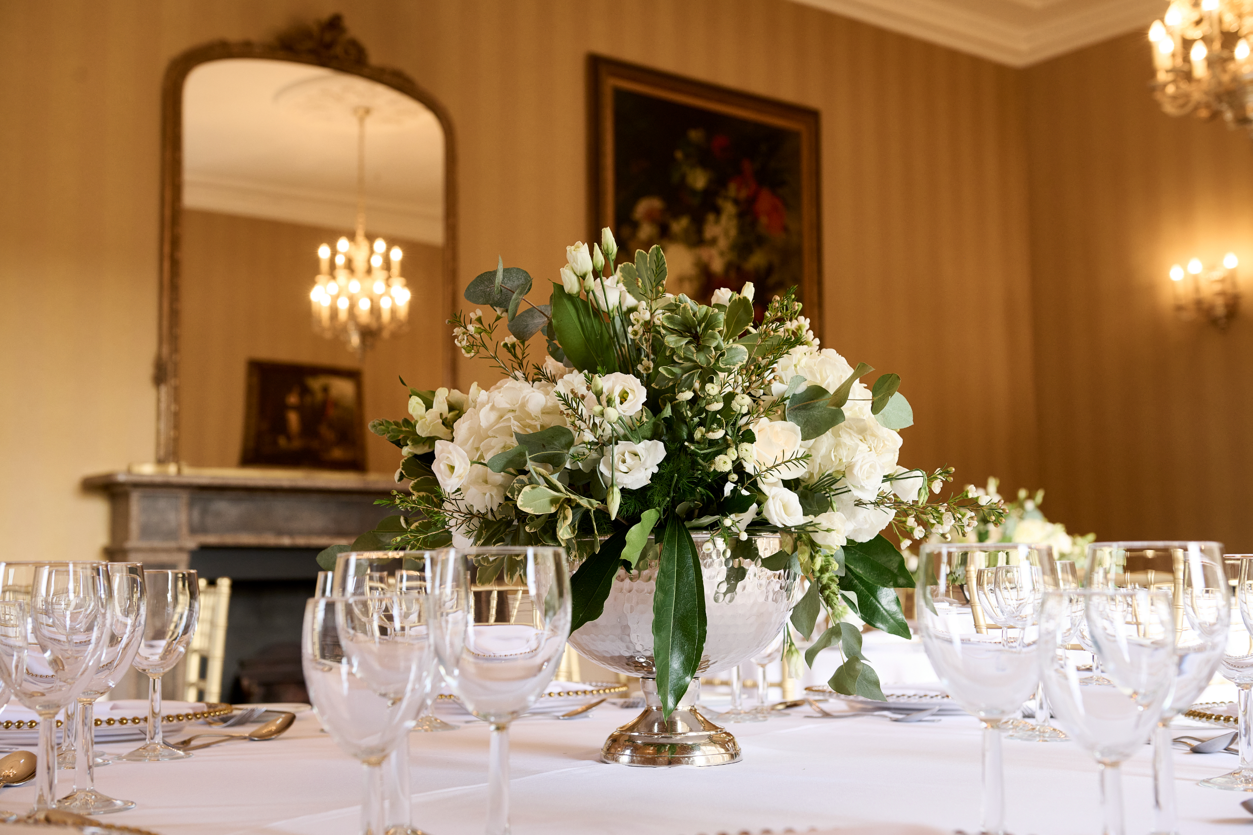 Also located within the baronial manor house, this room can cater for up to 50 guests and boasts beautiful period features with huge windows, chandeliers and an ornate fireplace.